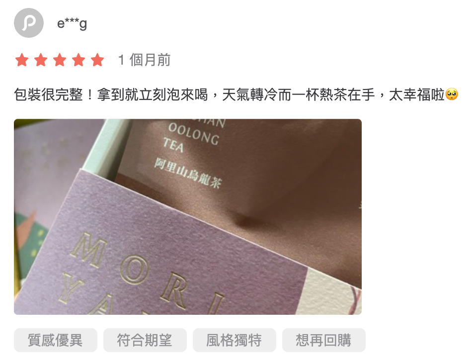 包裝很完整!拿到就立刻泡來喝,天氣轉冷而一杯熱茶在手,太幸福啦🥺...