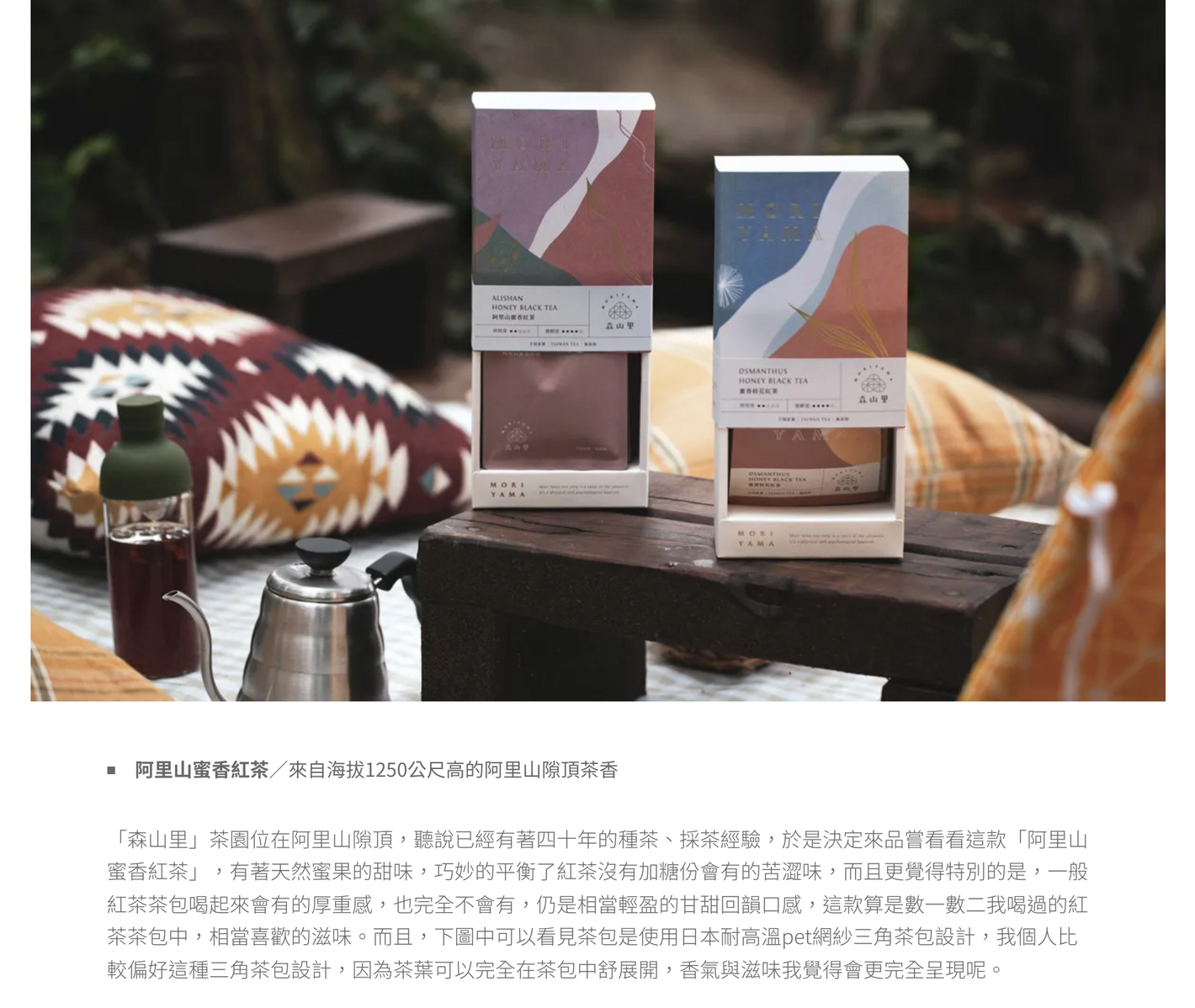 讓喝茶除了是品飲、品味,也是保養自我身心的生活態度!森山里茶園,以天然方式種植,選用台灣原料做為調和,做出純粹、無添加、通過SGS無農藥殘留檢驗合格的茶款,給予味蕾無負擔、天然的品飲滋味。